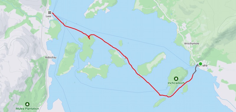 It’s a beautiful day and water is pretty flat. Although we’d only planned an hour or so’s paddle it’s so nice we decide to carry open across the loch to Luss. I call Margaret to see if she’d come and get us and she’s happy to do so.