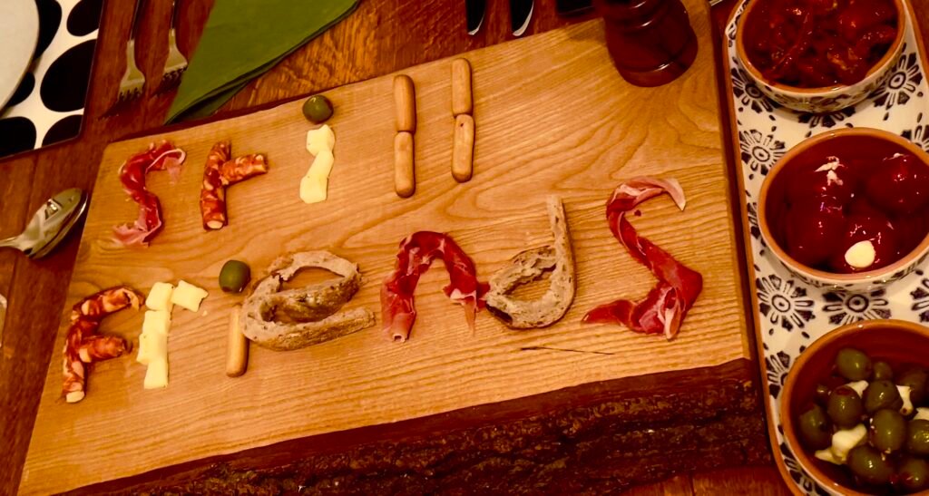 We enjoy a great evening of food and chat.