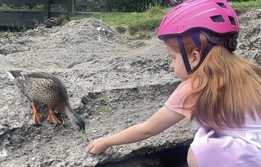 Margaret stays in the house with Aaron and I take Freya to Fred the ducks.