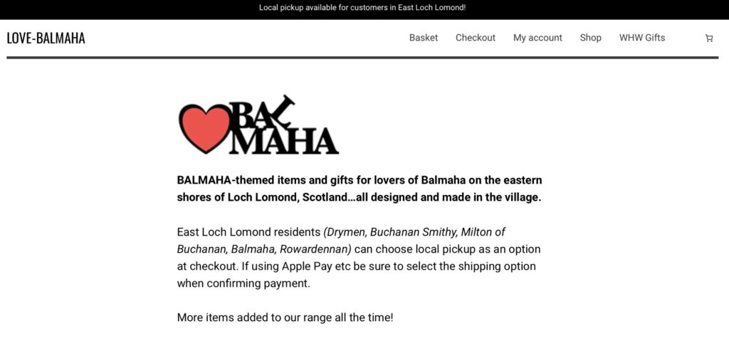 I walk back home and set up a website for my Love Balmaha idea. Photos, e-commerce and a Facebook page. I’ll get more socials set up in due course.