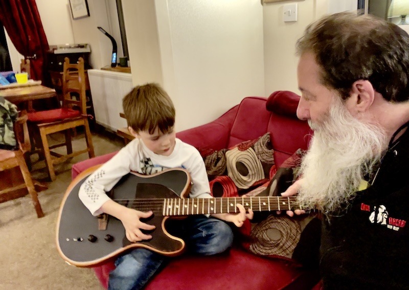 In the studio I carry on with the web server debacle then go back to the house for a guitar lesson with one of my young in-person students.
