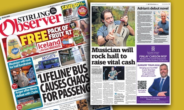 More pressing matters involve spreading the word about upcoming shows. Helpfully, the Stirling Observer has a page three feature and front page teaser which I use as content and post round my socials, local groups and WhatApp.