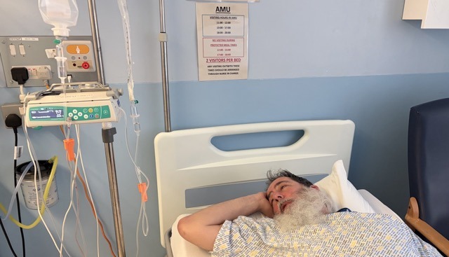 I’m not on good shape, but attention is pretty prompt and poor Margaret sits by my bedside all night watching me spew, moan and writhe about. I’m moved to a single room in the acute ward around 8am, still not any better, but getting he best attention.